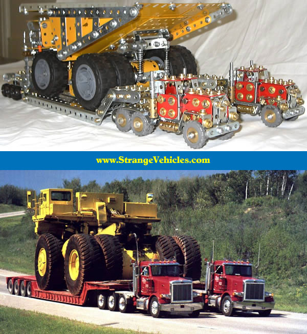 工事現場には普通じゃ考えられないような重機がるよねトラックひとつとってみてもド級もんで、なんか見ていると大きすぎて引力に吸い寄せられそうなくらいでかくて、言えば 惑星級すこし大げさ?・・・ にしても、でかすぎてどうやって現場まで行くのかなー??全面通行止め!警察届出当たり前!!こうやって運んでたのか~(上段の模型も so cooooooool!!!)