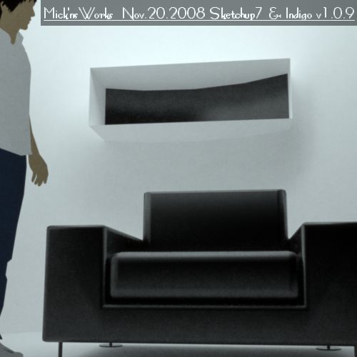 こちらもIndigo renderにてレンダリングです。Sketchupからindigo renderへは専用のexporterがあります。その名も「skindigo」です。ちなみにBlenderへのexporterは「Blendigo」と面白い名前です♪Google sketchupからkerkytheaへのexporterは「sk2kt」です。skindigoは確かバージョン1.0以降GUIが一新されより見やすく設定が細かく出来るようになりましたが、自分は旧式の0.9時代の表示形式が使いやすく、今でも更新してません♪indigo renderエンジンはv1.0.9skindigo expoterは0.9.1を使ってます♪freeはどんどん機能が追加されて新しくなっていきますが、操作覚えるのがついていけない現状です・・・・・かなぴーっす・・・・・ ←push push♪