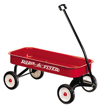 ラジオフライヤーとはアメリカの子供がいる家庭ではかなりの確立で保有されてるといういわば「かっこいい台車」です!で、アメリカではこのラジオフライヤーをママ「さーショッピングにはやっぱりこれがなくっっちゃ♪ラジオフライヤーに特売のオムツ山盛りにするわよー♪」とかパパ「バッテリー買ったは良いがなんて重いんだー!オーウノーonz こんなときはこのラジオフライヤーで軽々だぜー」もしくは子供「パパー♪早くひっぱってー♪」・・・・・など!使い方はいろいろだそうです♪そんな中、やっぱいましたよUSA・・・アメリカンスピリット・・・It is・・・CUSTOM!! このセンス楽しいーわー♪ 好き USA♪こちらがノーマルラジオフライヤー♪(写真クリック:日本総代理店リンク) 通常使用例(ほほえましい♪うちにも一台ほしー♪)本場買い物風景♪(でかすぎ !これ自体運べない! ママもでかい)女の子が乗ってる部分は2台分溶接してくっつけたとか・・