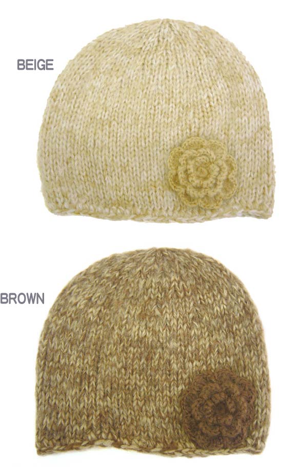ポイントの花飾りが可愛い! 手編みの温かみある風合いが魅力ウールの手編みニット帽子 919 モカこの商品は発送まで約7日程度、お時間がかかりますこと、あらかじめご了承ください。