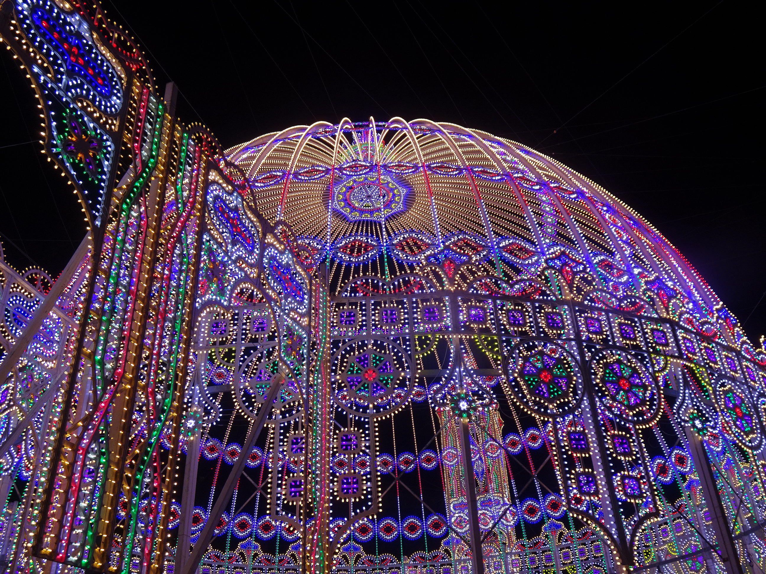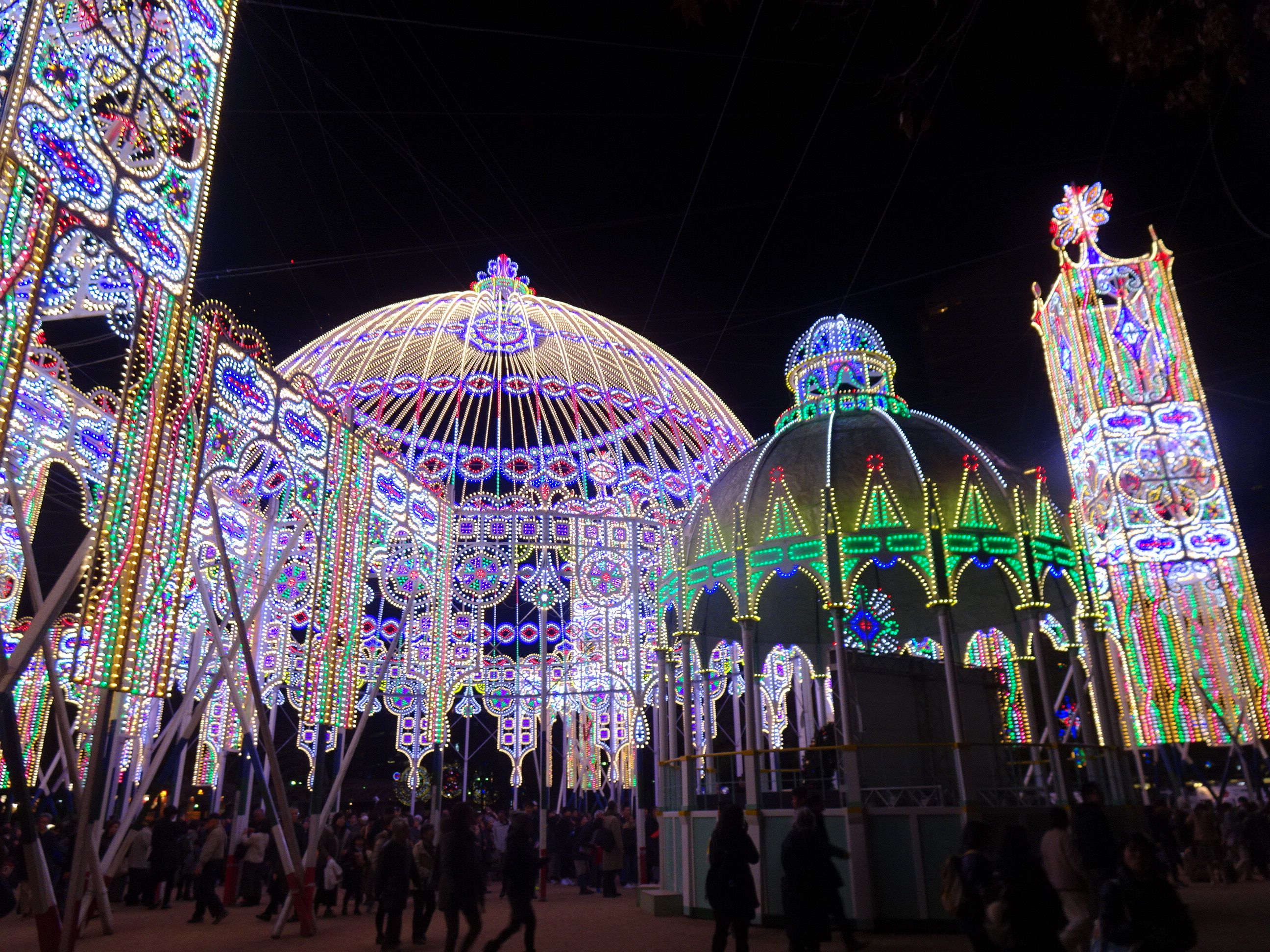 東遊園地の広場には、これまでにない取り組みとして、毎年設置している光の聖堂(カッサアルモニカ)