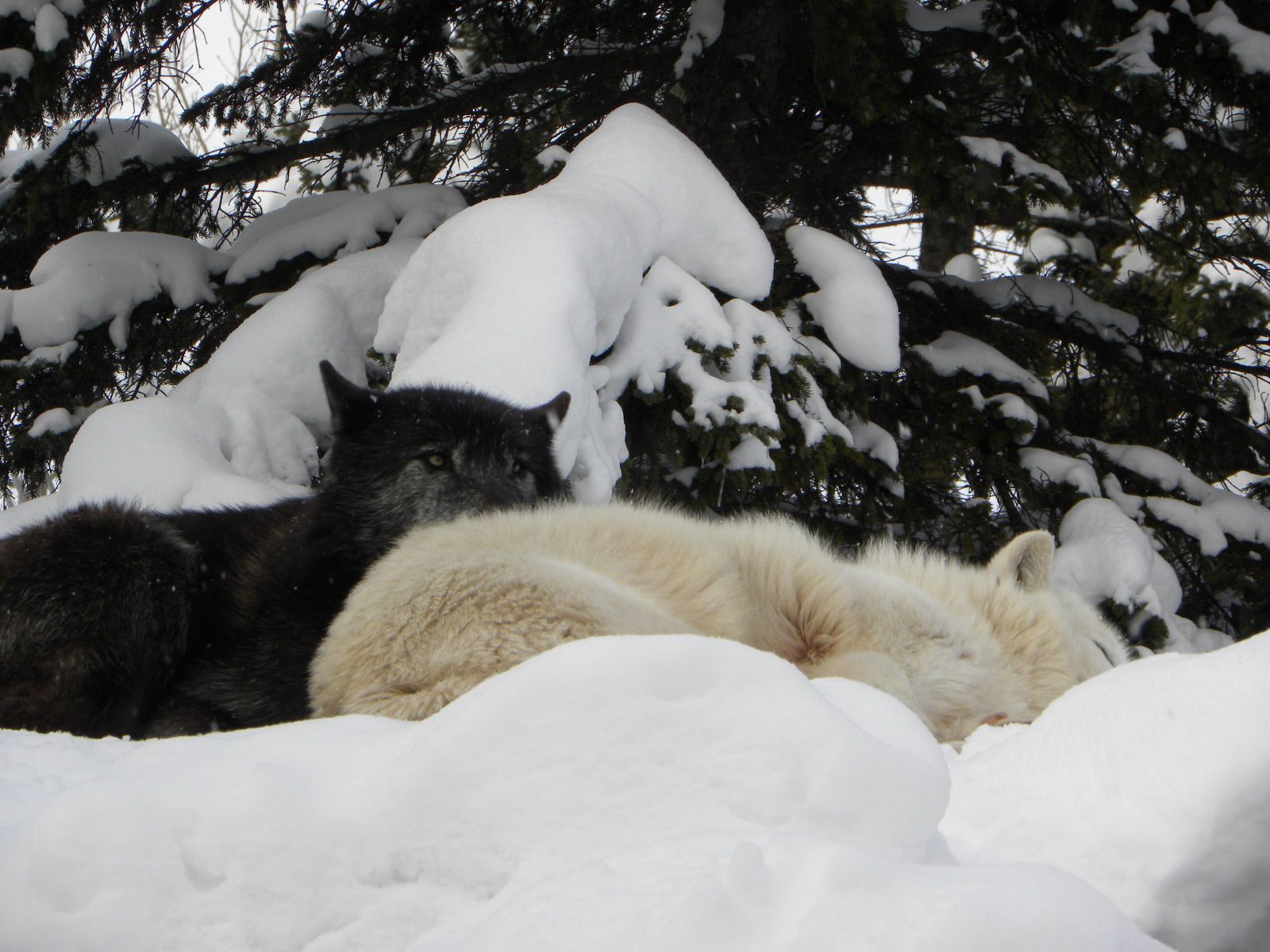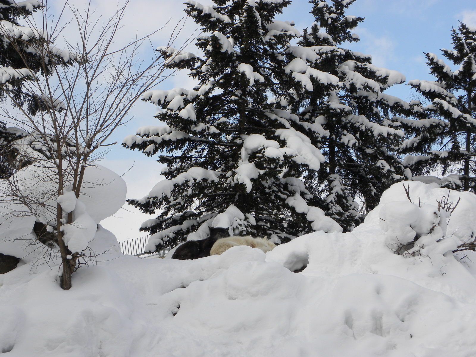 寒いのに  雪の上で  お昼寝