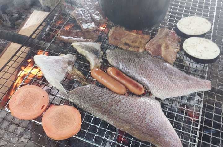 娘っちの婿どのが釣ってきた鯛を焼く
