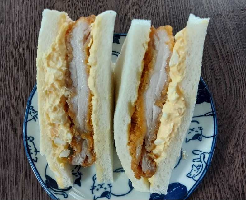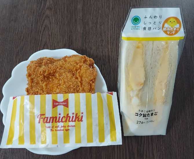 たまごサンドにファミチキを挟んで食べるとめっちゃ美味しいので、最近ハマってます。