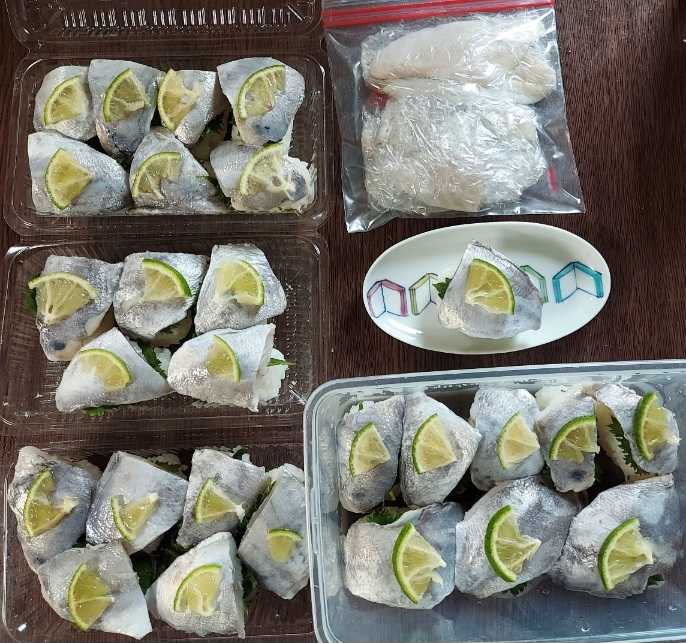 酢飯が足りなくてぼうぜが何切れか余ったので、ラップに包んで冷凍。