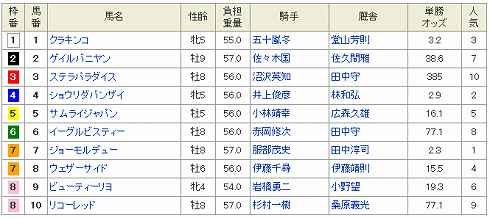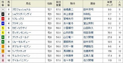 大井11R 羽田盃ダート1800m 発走20:15 (見解) 狙えそうな馬が多数いて混戦模様か。京浜盃組が一応上位とみたが その京浜盃3着の◎ 4 ベルモントレーサーから。JRA新馬勝ちに続く北海道2歳優駿でも2着上積み見込めそうなローテで理想どおりにきた。 京浜盃1番人気で2着だった〇 7 ゴールドメダル岩田騎手になり得意のイン差し炸裂も ▲ 8 ロンドンアイ底を見せておらず3戦3勝京浜盃勝ちのパンタレイを相手にしなかった。一度叩き上昇ムードがあるので、これが圧勝の可能性もあるでしょう。 あとは牝馬2頭メンバー強化で苦戦覚悟だが△ 6 ゴールドキャヴィアと JRA交流重賞マリーンカップではミラクルレジェントから1秒差4着と古馬相手に健闘した△ 11 エミーズパラダイスJRA芝でもそこそこの成績を残し、一発の魅力はあったが今見ると一番人気にビックリ若干トーンが下がった。 本線 3連複 BOX (4.6.7.8.11) 押さえ 3連単 84.6.7.114.6.7.11 ぽちっとよろしくねにほんブログ村