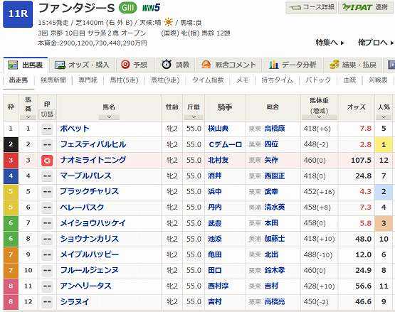 11/1(土)DMM出資馬ナオミライトニングの3戦目です。ビッグアーサー×ナオミエキスプレス2023.4.2生 2歳牝関西 矢作厩舎 ヒダカファーム募集額2800万2000口 1口14000円(CB20% 2800円)京都11R GIII ファンタジーS芝1400m(牝) 北村友騎手55kgがんばれ!馬券107.5倍 12番人気馬体重は増減なしの460kgでした。※画像はXフォロワーくれないのbさんより許可済みで掲載しています。ありがとうございます!TVでは映ってませんでしたが、本所発揮してたんやね。(キンちゃん思い出す)牝馬限定戦なのでべべ人気も先行してうまく嵌れば3着~掲示板あるかもですが、私にとってアレですので応援は行きませんでした。出走です。普通のスタートから中団より後方から。前回よりは11秒台が続く淀みないペースで先行できなかったかな?パンと出れば最初だけ12.5秒でしたので可能性はここだけだったようです。4コーナーを回りインを狙って追い出され伸びを見せましたがジッとしていた後方の外差し勢の出番となり荒れていたインは伸び負けし勝ち馬から0.6秒差8着でした。結果1着 1.21.5 (3F33.9秒)前走のもみじSより内容は良化しましたが、やはりOP・重賞では現状は決め手不足なんでしょう。メンバー落ちした自己条件なら1200・1400mで対応できそうな感触はありますね。春まではあの路線目指すも良しかなとは思いますが、将来的には1200mでどこまで活躍かなですよね。しばらくゆっくりして英気を養い今後の成長がとても楽しみです。お疲れ様全3戦1勝 750万芝(1-0-0-2)ぽちっとよろしくね0・