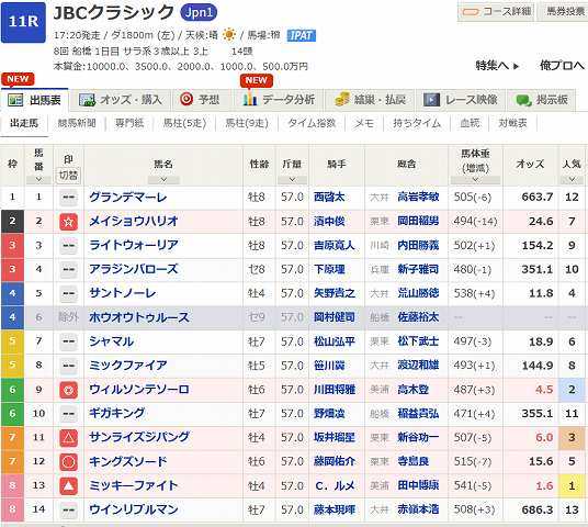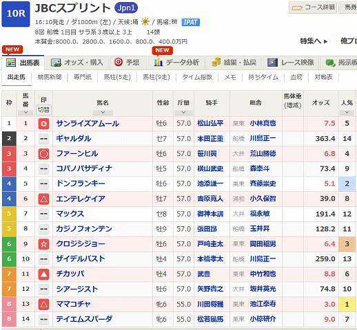 船橋~JBCスプリント予想です。1000mなので中央馬は未経験が多く比較が難しい。地方馬の台頭も視野に。初のGIだが◎サンライズアムールから。最内枠から好位で流れに乗れ展開向きそう。OP4勝と交流重賞も勝っているので格負けもなさそう。◎ 1 サンライズアムール〇 3 ファーンヒル▲ 11 チカッパ☆ 9 クロジシジョーヒモ△は6 エンテレケイア13 ママコチャ買い目3連複 1頭軸1(3.6.9.11.13)18~266倍3連複 2頭軸(3.11)6.9.13(3.9)6.13(9.11)6.1325~215倍ぽちっとよろしくねにほんブログ村