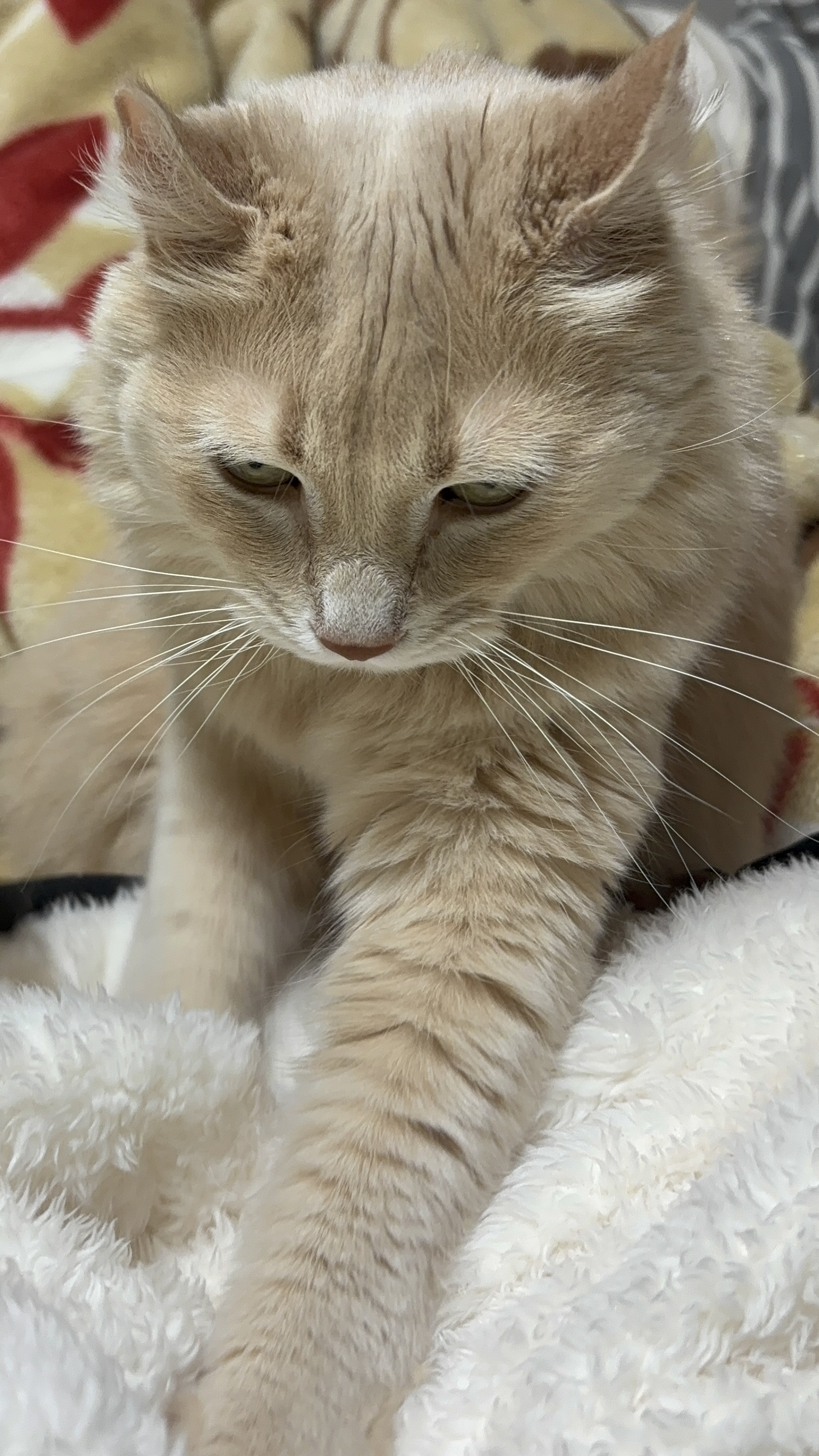 1匹だけになってしまった天ちゃん。風ちゃんが亡くなった後に、甘えん坊になったなと思っていましたが。。ちいちゃんも続けて亡くなり一人ぼっちになってしまってから、心配なぐらい甘えん坊になってしまいました。1人でいるのが嫌なようです。人間がいなくなると付いて来る。これは分離不安なのか。。今まで一人きりになる事は無かったもんね🥲時間が解決してくれると良いのですが。。
