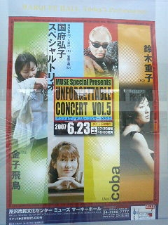 今朝のラッシュアワー・ミュージック24日にFM生中継されたN響定期公演から2007年6月24日(日) 開演03:00 PM NHKホール 第1596回定期公演 Aプログラム [指揮] ウラディーミル・アシュケナージ [ピアノ] 清水 和音 [曲目] ラフマニノフ/ピアノ協奏曲 第3番 ニ短調 作品30 チャイコフスキー/交響曲「マンフレッド」作品58ラフマニノフ 第3番いやぁ清水和音さんの超絶技巧に今更ながら驚きです、しかもタフですね。最後までスリリングなまでの緊張感をもたせてくれました、聴いてるこちらの方まで。日本人ピアニストでのラフ3、小山さんの演奏も良いけど清水さんがダントツで素晴らしい。チャイコフスキー 「マンフレッド交響曲」滅多に演奏会プログラムに載らない曲、演奏時間の長さ(約1時間)や編成の大きさなどで敬遠されてるのでしょうけど、管理人は好きな曲で今から10年以上も前でしょうか上野の東京文化会館にて小澤征爾指揮新日フィル定期で初めて聴いて好きになりました。ちなみにこの時の定期の前半の曲目、アイヴズ/交響曲第4番も初めてで今ではマンフレッド、アイヴズ4番とも管理人としては珍しくそれぞれ複数のCDを所持しています。今のところ「マンフレッド」はマゼール/VPO盤、アイヴズはM=T・トーマス/CSO盤がお気に入り。さてアシュケナージ/N響の演奏、魂のこもった見事な演奏で管楽器も馥郁たる香りと響きで真にご立派な格調高い演奏でN響弦セクションとともに熱演、演奏終了後のアナウンスでやはりコンマスは篠崎さんでした。アシュケナージさんとは抜群の相性のように思います。2曲併せて2時間にも及ぶ大曲ですが演奏するほうも聴いてるほうも相当疲れた事でしょうね。アシュケナージさん音楽監督の任期満了が近いですが今頃になってN響との最近の演奏はどれも素晴らしい力演が繰り広げられているのが何とも不思議。*********************************************先週土曜日は所沢ミューズ・マーキーホール(中ホール)で国府弘子トリオの演奏で毎年恒例の[UNFORGETTABLE CONCERT VOL5]を聴いてきました。ゲストにアコーディオンのcobaさん、ヴァイオリン、ヴォーカルの金子飛鳥さん、ジャズシンガーの鈴木重子さんの豪華ゲストで3時間近い楽しい時間でした。たまには肩の凝らない音楽もいいものですし特に鈴木重子さんのヴォーカルに癒されました。不思議な魅力を備えた方です。文字どおりアンフォゲッタブルな、そしてカムフォッタブルなコンサートでした。♪