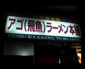 佐世保名物は・・・最近にぎあわせている「佐世保バーガー」だけにあらずです!この写真の通り うまい!ラーメン!あごだしラーメン!です!昨晩 嫁と一緒に子供達を寝かせて行って来ました!あごだしラーメンとは読んで字のごとく あご(飛び魚)のだしでスープをつくるラーメンです!美味いです!私はノーマルのあごだしを妻はホワイトソースのかかったあごだしラーメンを食べました!うまかった~このマスター そうとうロックな人!レッドツェッペリンが流れる・・・そんなロックなラーメン屋!皆さんにも食べてもらいたいそんなラーメンです!