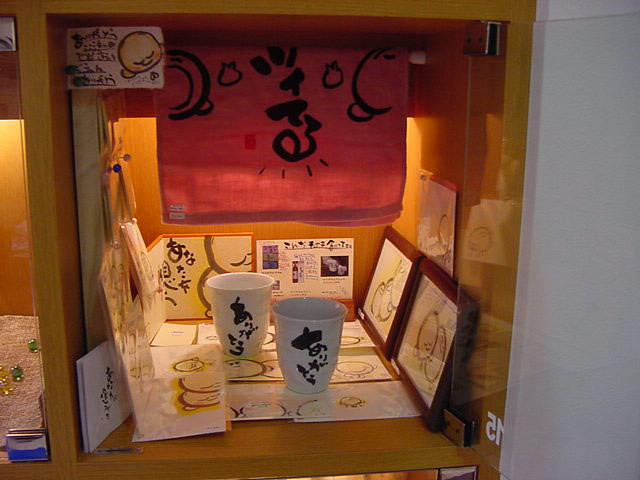 長崎 浜んまち「キューブギャラリー」今回飾りつけは家族で行ったので出発が遅くなりました。私たちが到着するより早く私の大切な理解者でありお得意様の「バモス」さんの方がはやく見えられてて・・・・おまけに差し入れまで!ありがとうございました!美味しいはずだわ!よくよく袋を見てみると「ドンク」のパンじゃない~!バモスさん!ホントにありがとうございました!美味しかったぁ~ さてさて、陳列はそこそこに(約2時間弱?)できあがり、せっかく長崎に来たんだから浜ブラ(浜町アーケードをブラブラ歩く事=造語?)しよう!と家族4人でブ~ラブラキューブギャラリーの陳列よりもなによりもこの息子二人と浜ブラするのが何より疲れました!ひとりはあっちに、ひとりはこっちに!ひとりがある本を買えば自分も同じものが欲しいと泣き叫び・・・歩くのが疲れおんぶをせがまれ・・・両手に抱える荷物を片手に収め、もう片手は息子をおんぶし支えるために・・・ホントツカレタ・・・・・ でもな~やっぱりこいつらが、うるさい手のかかるこいつらがみんな揃っていれる事が幸せだと感じました。マジでキレて怒ったりもしますが・・・わがままばかり言う息子達ですが・・・たのしかった!ありがとう!