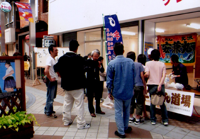 貫太朗の空手デビューと時を同じくして商工会議所青年部のイベント、「産業祭」が行われました。また時を同じくして「小阪裕司」さんの講演が商工会議所で行われたんです。ちょうど私はその担当委員会でしたので当然「産業祭」の方へ・・・・小阪先生の講演は今回あきらめ産業祭に集中!と、第二会場である手作りところてん体験、うどん道場ブースになにやら見た事のある人物が・・・そう!小阪裕司氏本人が!最初は「あ!こんにちは!」と普通に挨拶をしたんですが・・・え?ええ~?・・と、よくよく考えると現実的にはありえない展開が目の前に繰り広げられてて入る事に気づいたんです !「あ!小阪先生!よかったら食べていってください!手作りの五島のところ天です!」と、小阪先生に有無を言わせずすすめてしまいました!(笑)それに対して小阪先生は実にエレガントに「いただこうかな!」といって ところ天ポン酢バージョンを食されていかれました!「いままで ところ天食べて美味しいって感情ってなかったんだけど、これ美味しいね!やっぱりライブの醍醐味だね!」いいことおっしゃる!ライブの醍醐味!=====================================じつは、小阪先生がわざわざ足を運んできていただいた影には何を隠そう私の空手の先輩であり、商工会議所の事務局のi先輩の粋な計らいがあったのです!小阪先生の講演会場から帰りの駅までの途中に「産業祭」の会場があったんですが、おそらくi先輩は「小阪先生よかったら帰りの道こちらから帰りませんか?ちょうど青年部の産業祭という行事をやってまして、その中でW系の会員さんも頑張られていますよ!」などの声かけをしてくださったのだろう。ありがたい!ほんとありがとうございました!i先輩! また、今回記念すべく貫太朗空手デビューにて記念になる写真を撮ってくれた義父!きっと嫁さんだけではこんな写真を撮る事はありませんでした!ありがたいです!ありがとう! 本当に本当に私はいろんな人のおかげをいただいてるな~と感じます。ありがとうございます! ツイてる!ツイてる!ツイてる!ツイてる!ツイてる!ツイてる!