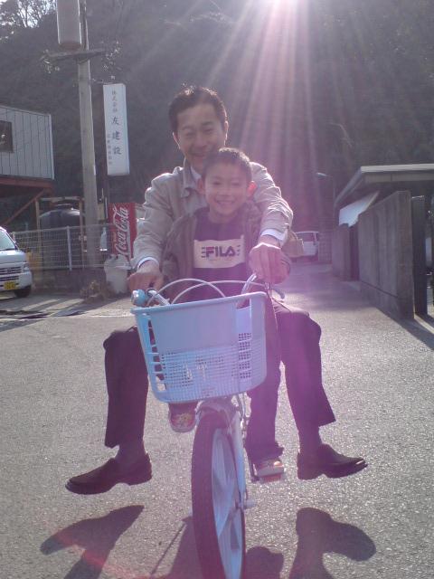 一緒に仕事頑張ってもらってる義兄 彼が貫太朗の自転車の補助輪をはずしてくれた! 早速 貫太朗と自転車の練習 二人とも いい顔してる! ・・・・そういえば最近 真之介の写真が少ないなぁ~(苦笑)