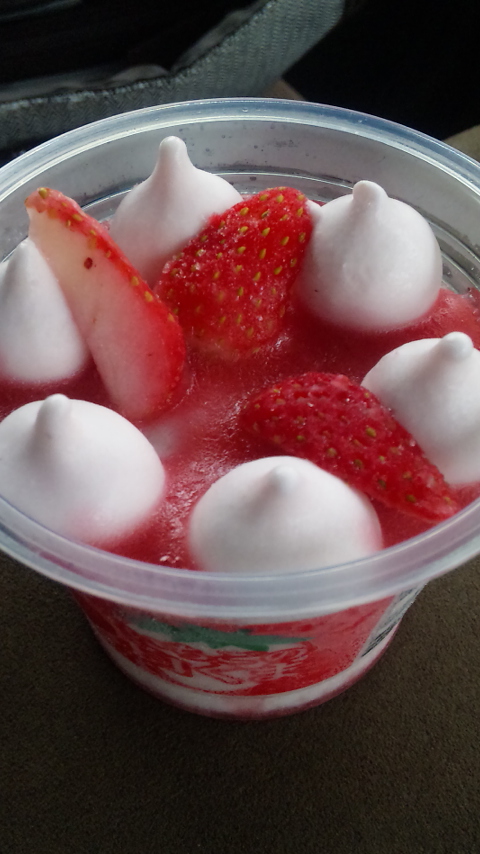 出張中ですだいたい月一の この出張でどのくらだろう・・・かるく1000キロは走っているのではないだろかうん走ってるよ こんなに走るのだったら最初からハイブリットっていう機能を搭載した車に乗るべきだった・・・と後悔します 次こそは買います 話しかわって・・・ こんな出張営業の合間に甘いものがたま~にほしくなります 特にこんなに蒸し暑い時期冷た~いあま~ィもの こんなもの以前わたしの尊敬する先輩ガルシアさんにご馳走になった白くま あの白くまの進化版!イチゴのしろくまを発見してしまった迷うことなくレジへ・・・ あぁ~こんなあっつい毎日このしろくまで乗り切れそうです~ しかし食いすぎに注意しなければなぜなら練乳が相当きいているため! これはセブンで販売してありますよ! まぢうま!