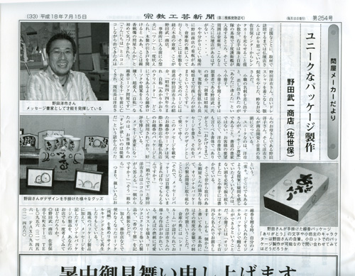先日、はるばる佐世保まで宗教工芸新聞の住田社長が取材に来てくれた。