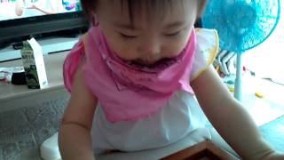 御朱印とは、チョコでコーティングされた栗まんじゅうのようなものです。小松に行ったときに、お土産で頂きました。Tちゃんが大好きなお菓子です。Tちゃんが食べようとしていたら、横からMISAKINGに奪われてしまったようです…もう、ぐちゃぐちゃです。でも美味しかったんだね。さて、今MISAKINGは体調が悪いです。ここ10日程、風邪をひいて咳と鼻水が出ていましたが、一昨日の夜に蕁麻疹がでてしまいました。食べ物のアレルギーでもあったのか?と思いましたが、思い当たる食べ物は特になければ、風邪のストレスとか疲れで出てきているのでしょう。とお医者さんが言ったので、食べ物ではないだろうけど、昨日の夜は、蕁麻疹がひどくなって、顔もはれぼったくなって、とっても可哀そうでした今日の朝には熱もさがり、蕁麻疹もほとんどひいてきていたので、一安心。でも咳がすごくて、寝ていても咳で起きてしまい、泣いてしまうので、やっぱり可哀そうで可哀そうで…また病院に行ってみようと思ってます。今はやっと少し寝れてる感じかな。。。