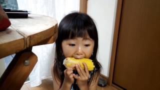 お盆にKちゃん実家の家族と、キャンプへ行ってきました。キャンプへ行く前に実家でとうもろこしが出たので、MISAKINGに食べる?と聞くと、いらないと言ったのに、じいじとグランマとKちゃんが食べると、ふと気がつくとMISAKINGがとうもろこしを食べていましたなんだか小動物みたいで面白い伊達眼鏡をかけて遊んでいました。眼鏡大好きMISAKING