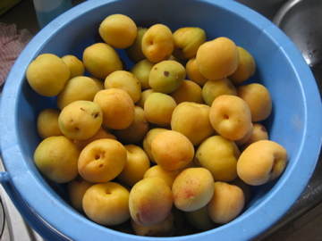 庭のアンズが食べごろなので鳥に食べられないうちに収穫。まだ木が小さいわりには今年はよく実がなった。少し若い実は杏露酒に呑めるのは3ヶ月後だけど・・誰も呑まないだろうな( ̄-  ̄ ) ンー残りをジャムにする為に水に浸してる間にパンの生地をホームベーカリーへ生地が出来るまでにベークドチーズケーキづくりケーキが出来てパンが焼けて アンズの種を取りさとうをからめしばし休憩~♪貰い物フルーツと残りのアンズ日が沈んだら夕飯を作りながらジャムを煮よう☆、。・:*:・゚