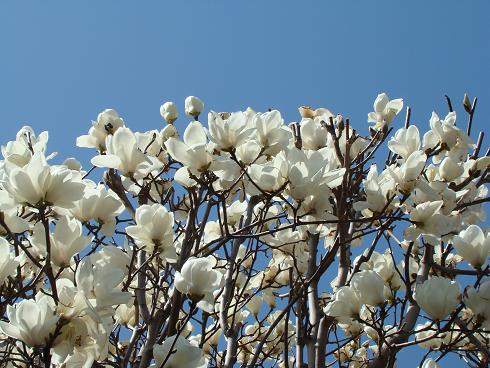 鎌倉の春(26)春浅い頃 木蓮は寒風に耐えて大木に真っ白な花を咲かせる木蓮が咲くと貧しくとも凛として生きた母を真っ先に思い出す!母逝きて 鐘衝堂の 木蓮よ