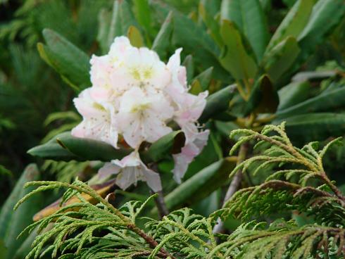 尾瀬(26)夏の日の僅かに差し込む陽を浴びてハクサンシャクナゲ咲いているなり母衣崎 健吾尾瀬・ハクサンシャクナゲ・至仏山