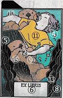 A.同じもの探し…3番と12番(1.右頬の上の髪の有無 2.左手の形 4.髪の下の大き目の気泡の有無 5.向かって左端の海藻の丈 6.文字の有無 7.左肘下の気泡の大きさ 8.下の熊の右脚の位置 9.貝の有無 10.上の熊の右掌の位置 11.海星の有無 13.色の薄い海藻の有無 14.流れる後ろ髪の有無 15.中央の海藻の丈)