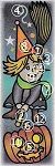 A.同じもの探し…10番と13番(1 箒の刷毛の長さ 2 箒の柄の長さ 3 髪型 4 箒脇の図形 5 南瓜の鼻の形 6 南瓜のヘタ 7 マフラーの長さ 8 帽子の柄 9 口の形 11 南瓜の右目 12 左足の向き 14 鼻の高さ)[追伸]絵を追加しました。