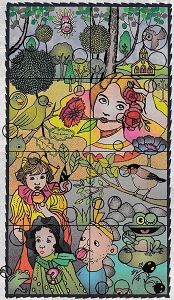 A.間違い探し…B(A:4 B:2 C:4 D:3 E:4 F:4 G:4 H:5)A 太陽の口 下向きの枝の有無 中央外寄りの木の有無 山の有無B 鳥の向き 協会の外側部分の有無C 鳥の尾と外枠の前後関係 外寄りの鳥の顔の向き 内寄りの鳥の目つき 中央上部の木の幹の長さD 薔薇の枝先の向き 小指の形 襟元のリボンの有無E 頭頂部のリボンの有無 中央に延びるリボンの長さ 手に持つものの大きさ 中央寄り下部の草の大きさF 嘴の形 縦長の石の有無 鉢巻の先端の長さ ウインクの有無G 蛙の手と外枠の前後関係 "?"の有無 舌の出し入れ 上の人の右手H 袖の長さ 蓮の葉の欠けの有無 蛙の右手 下部の蛙の出加減 下のおたまじゃくしの向き
