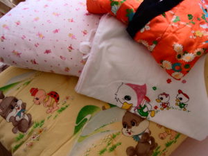 ベビー布団カバーを作ってみました娘が使っていたベビー布団です今度は娘の赤ちゃんの我が家でのお泊まりようですウサギとカメの可愛いお布団柄が見えなくなっちゃうけど、ダブルガーゼでカバリングです懐かしい丹前というのかな、、、娘のミルクを飲ませる時のお包みにと母が作ってくれていたもの綺麗なままあったので、今度は娘の赤ちゃんに利用です。お昼寝用にとっても便利で可愛い