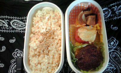 今朝は実は頑張って2時起きして丑三つ時学習をしたので時間は十分。よって■玄米 ちょいと貧血気味だし時間はあるし…で炊く気に。■煮込みハンバーグ これはお弁当用に作成・ストックしといたハンバーグを煮込んだだけ。■マッシュポテト これはじゃがいも丸ごとをラップにくるんで レンジでチン! ハンバーグの汁受けに敷き詰めてあります。■トマトのオーブン焼き 他が温かいので傷まないようトマトも温めた。■焼きりんご らで箱に林檎が入ってたのを見て突然食べたくなった。 で、カットして砂糖とシナモンとレモン汁とレーズン振って トマトと一緒にオーブンにお任せ。にほんブログ村