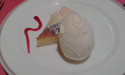 アイスクリームと洋梨のタルトかな?