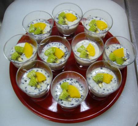知人に差し上げるように また~ 作りました。こっちは、連続で食べてるので やや飽きてますが・・こんな感じです~ 飾りがワンパターンで。。作り方無調整豆乳 300ml砂糖 大4(パルスイートなら大2)イナアガー 小1すりゴマ 小1画像の量は、これを倍にしています。これは、お酒のグラスです。お客さん用かな?だって、私たち夫婦は、コップ酒ですから
