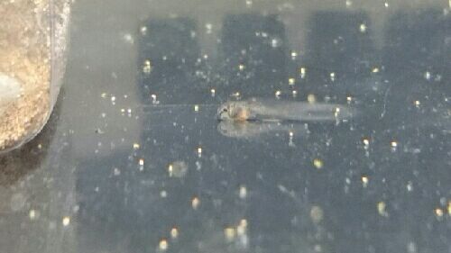 ようやくチビコリがブラインを食べてくれましたまだ確認できたのは2匹ですが。 うまく撮れませんでしたがお腹がオレンジなのがわかりますかね? 実は、昨日の晩になんと5匹同時に稚魚が☆になっちゃいました 「私には一定のサイズ以上に育てられないのかな、、、」と少し諦めの気持ちが出てきたところだったので、これはホントによかった! エサ以外にも朗報が。朗報というのはヘンかもしれませんが。 5匹同時☆という事態に全滅の2文字がチラつき、半ば恐慌状態のまま一か八かの全換水を強行しちゃいました。 温度は注意しましたが完全に新水。今朝が心配でしたが落ちた子はいませんでした。 水換えは意外と大丈夫なのかも?これは今後飼育していく上でいい体験になりました。 少しだけ明かりが見えた気がする出来事でした。でも今回の産卵はそろそろ終了した模様。 ではまた!