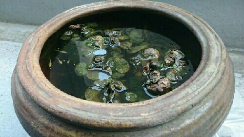 あったかいですね〜(←流行りの歌ネタを文頭にいきなり書こうとしたものの自身の年齢を考慮しギリギリで思い留まった結果) 冬の間、たま〜の餌パラパラ以外はひたすら放置し続け 変化といえばホテイアオイが枯れていっただけの睡蓮鉢をそろそろ始動させようかと思い立ちました。 いまはこんな感じです。お見苦しくてすみません。 枯れたホテイアオイの根には緑の苔?藻?がもじゃもじゃ生えっぱなし。雨が降ろうが雪が降ろうが放置。 そんな状態にもかかわらずメダカたちは最近気温とともに活性が上がってきてよく姿を見かけるようになりました。 屋内に置いてる水槽の水質や魚の体調には気を揉んでるんですが、放置のメダカたちは至って元気。 自然の力はすごいですね いいシーズンになってきましたので住んでるメダカにも眺める人間にも嬉しい環境を作ろうと思います。 水槽の前景中景後景同様に植物の背の高さを考慮して侘び寂びを感じるいいレイアウトに出来ればいいんですが センスも知識も経験もない私ですので、安易に「花が可愛い」という理由だけでスイレンとオモダカを植えてみようかと思ってます。 (ビオトープ/睡蓮)姫睡蓮(ヒメスイレン) 赤(1ポット)(休眠株) (ビオトープ/水辺植物)ヒメオモダカ(1株)(休眠株) これに、既存のホテイアオイが新芽を出して生存していたら1株2株残してみましょうかね。ダメなら全撤去! あとはミナミヌマエビを10匹ほど投入してみてビオもどきを目指します。 (エビ・貝)ミナミヌマエビ(10匹) 北海道・九州・沖縄航空便要保温 春から夏に向けて睡蓮鉢のブログへの登場頻度も上がってくると思いますので乞うご期待! ※おまけ※ 同じく植えようかと考えていた「デンジソウ」 (ビオトープ/水辺植物)デンジソウ(1ポット分)(休眠株) 「電磁草」ってヨーヨーとか竜巻とかスピンが似合いそうなカッコいい名前だなあと思ってましたが クローバーのような四枚の葉が「田」の字に似ている「田字草」なんですね。 ひとつ賢くなったうららかな春の日でした!(笑) ではまた!