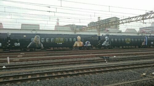 普段使う鉄道は南海電車です。 南海にはなんばから関空までを繋ぐ座席指定の有料急行ラピートというものがあり、このラピートの車両を使ってちょこちょことコラボ列車を走らせてます。 今回はスター・ウォーズでした。何日か前から走ってたようですが初めて見ました。 全てのラピートが塗り替えられているわけではないのでタイミングが合わないと見れないようです。 外装のみならず、座席もスター・ウォーズ仕様になっている様子。 最近私がハマっている海外ドラマ「ビッグバンセオリー」の、列車とスターウォーズの両方大好きなシェルドンなら奇声を発して喜びそうなイベント列車です。 以前はシャア専用色に塗られたネオ・ジオン列車という限定ラピートも走らせてましたので、南海の中にはいい感じの方がいらっしゃるようですね。 次はなにかな〜。 という訳で普段以上に取り留めもない話でした。 ではまた!