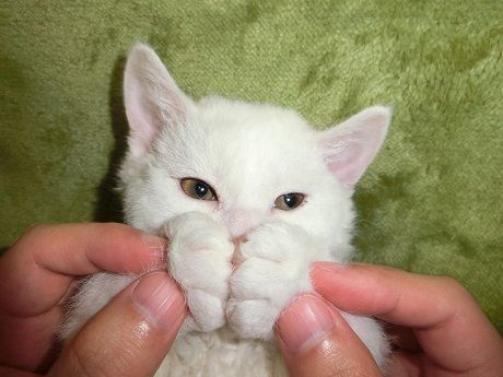 SELKIRK REX COLLECTIONスノー パレードはなお手紙抜粋近況報告です。初節句をリボンでおしゃれしてみたのですが、お内裏様を舐め回し、お雛様には猫パンチしてました。私がインフルエンザになり、3日ほど家にずっといた時は甘えてきて ずーとくっついてたので、インフルエンザがうつるんじゃないかと心配しましたが、猫にはうつらないんですね本当に毎日お転婆で、立ってる人の脚をよじ登り、いないと思うとカーペットの下に隠れて昼寝、お客さんの足の上でゴロゴロ、ごみ箱のゴミを出してごみ箱の中に入りと何をやっても可愛く楽しく過ごしています。チンチラの細く軽い毛はすぐに絡まってしまいます。これだけ美しく保つには 並大抵ではないお手入れが必要です。真っ白に美しいお顔にも お手入れは欠かせません。美しいはなちゃんは、ママの努力そのものです。