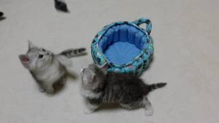 セルカークレックス コレクション雪の シマシマ子猫ちゃんその1人と遊ぶ練習 頑張っています。