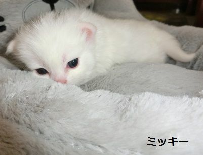 セルカークレックス コレクションミッキーこんにちは!ぼく、ミッキーでし。パパみたいな 大きな白猫目指していますにゃでもお顔は ママ似?お目目が開いて 可愛くなりました。