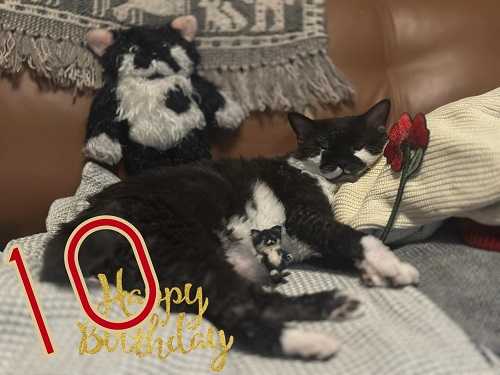 セルカークレックスコレクションテト・テト・テトラ!10歳の お誕生日 おめでとう!こんばんは。テトラの主人〇〇です。やっと!!涼しくなってきましたね。ここ数年の夏の暑さは人間にも猫にも、他の生き物たちにもよろしくないですね。。。さて、昨日10月3日、テトさんがとうとう10歳を迎えました!心臓と肝臓に病気を抱えながらも、また1年がんばってくれました!テトさんには尊敬と感謝しかありません。本当にエライコです!相変わらずベランダ活動に勤しんでいて、先週はトンボを狩ってきました。排水溝の凹みで身を隠す(隠せてない)狩スタイル病気と闘っているとは思えない膨よかボディ苦手な姪には爪で応戦まだまだキラキラお目目のおじさんテトさんをお迎えして10年弱、どおりで人間も疲れが取れない身体になるはずですねwまだまだテトさんのお世話をするために強化しないと\\\\٩( 'ω' )و ////季節の変わり目のせいかインフルエンザなども流行っているようです。河田さんもどうぞご自愛ください。ではまた。***テトラ君 10歳のお誕生日おめでとうございます!10歳とは思えない ふかふかでぽよよん。我侭ボディーってヤツですかね?お顔もお目めもお耳も真っ白い襟飾りも ピッカピカにお手入れされていて病気の暗い影なんて微塵も見えません。ママさんの細やかな気配り、見守り、お世話がにじみ出ています。ちょっと驚いちゃったのは、皮のソファーに爪痕がついてないね~?!テトラちゃんはちゃんととぎとぎする場所があるのですね。ニャらり家はそこら中に とぎとぎされてます。 悲しい…。ココのところ、や~っと高い空に清んだ風。心地良い秋を感じられるようになりました。我が家は高速道路の真横にありあまりお勧めできる外気ではないもののベランダの開いた窓にへばりついて外を眺めている子のうれしそうなこと。トンボ狩りは出来ないけれど、網戸にくっついたカナブンに大興奮。パーツがバラバラになっちゃうんで、間違っても入ってこないで欲しい…。