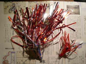 今晩はぁ~デビル8のタコベイトを換えてみた小っこいのがノーマル・・・派手派手なのが新しいタコベイトボリュームが違いすぎるかなもう少しこじんまりとまとめた方が良いかも・・・でも目立つ事まちがえなしちっこいタコは逃げてゆきそう子タコは要らないデカイの狙いで良いかもですもう少し改造しよう昨年デビル8釣ったタコ