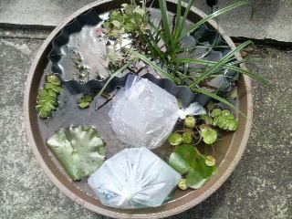 この後は、鉢の水を少しずつ移していき、最後に生体のみ鉢に投入です。