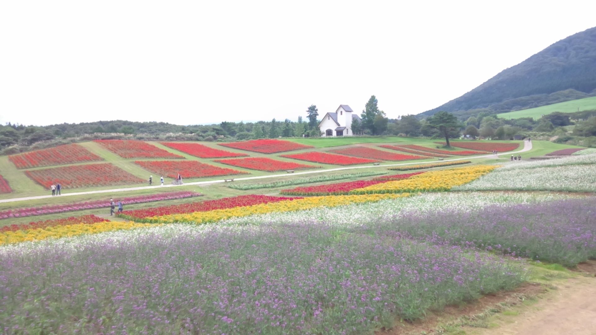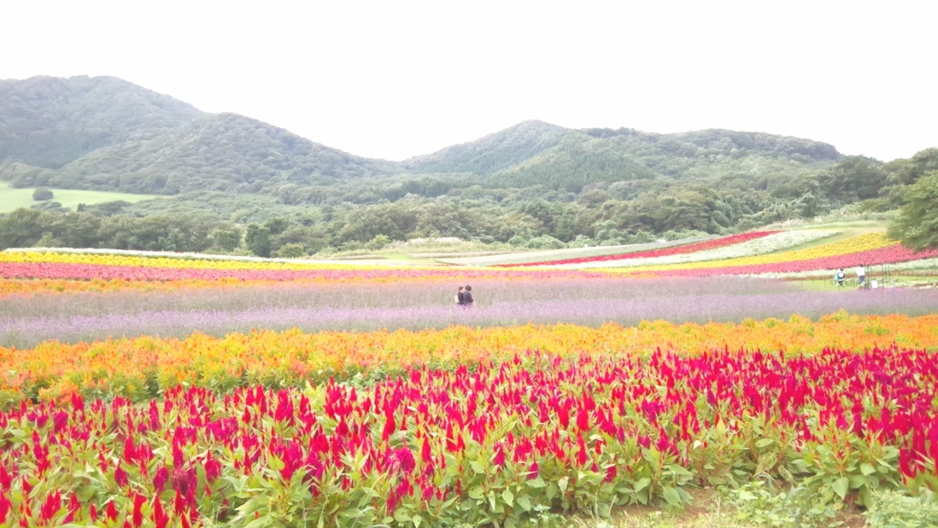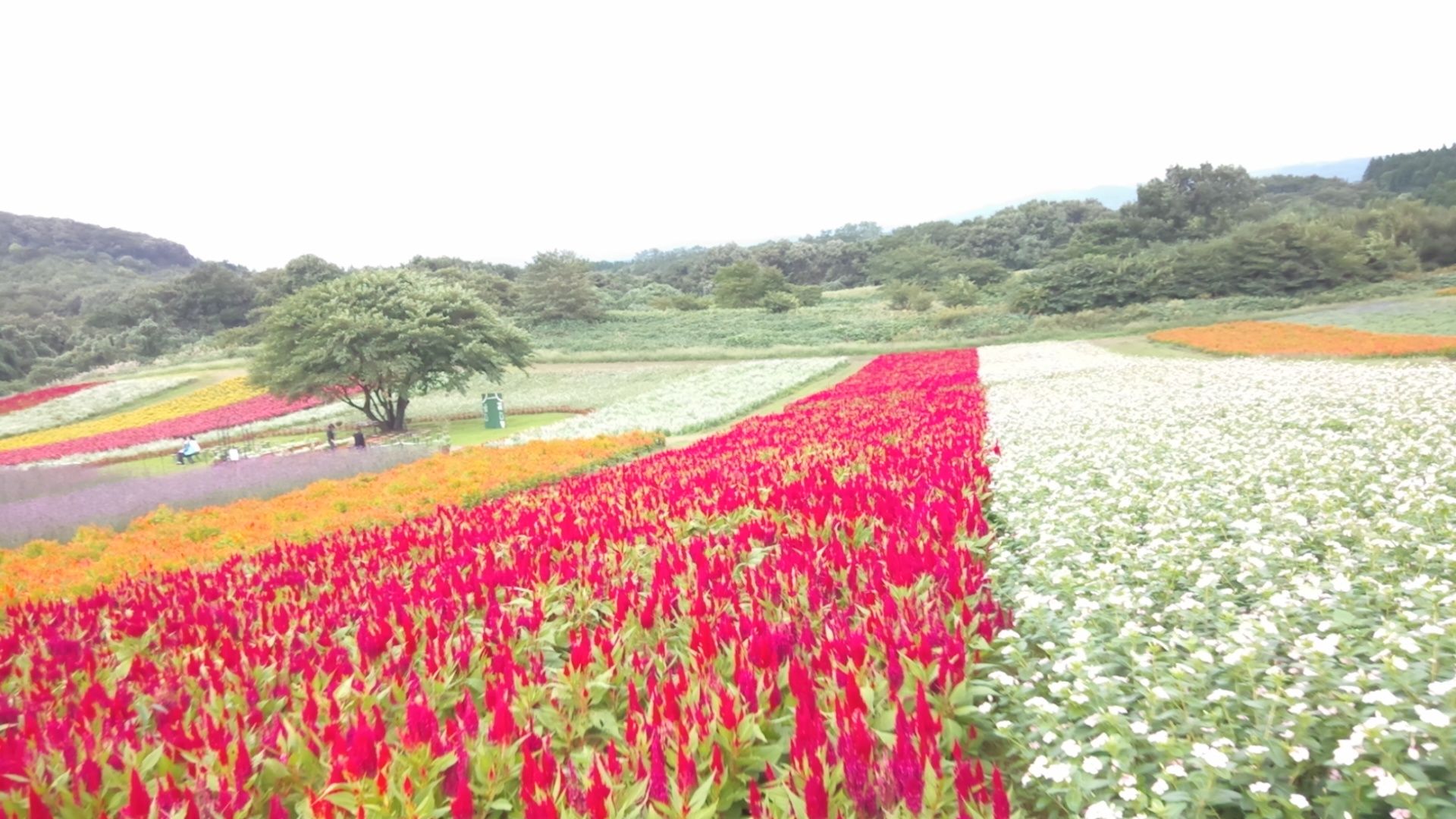 9月の中旬曇り空時折おひさまも顔を見せてくれました、花畑がすばらしい!北海道の富良野に行けないけどとても気持ちいい、今度富良野にも行きたい、この日は赤いサルビア,けいとうの赤、黄、ブルーサルビア、撫子の赤、もも、ピンク、白い花
