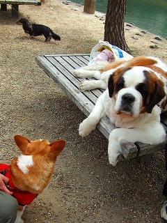 今日も空は模様・・・4月に入ってから、ほとんど雨の気が・・・でも、今日は雨が止んだ瞬間を見計らって3回も、短距離の散歩に行けたので、まずまず。 そういえば、この前お花見に行ったときに一匹の大きいワンちゃんに遭遇。その名はセントバーナード!身近で触らせてもらったりしたのは初めてだったけどおとなしくて、すっごく可愛かった~ ノンも少々、腰が引け気味w ノンが、小さく見える?^^でも、このワンコ、すっごい技を持っていた!!飼い主さんが、鞄の中から、おやつを出してきてお口の中にそっと、そのおやつをいれてあげるとそのままフリーズ状態・・・ヨダレが滝のようにダーッて流れてくるのだけど完璧、固まった状態!で、飼い主さんの「よしっ!」の一言でムシャムシャ食べ始める。マテが出来る子は多いかもしれないけど(ノンは出来ないw)口の中に入れても、合図があるまで食べないで我慢できるってすごくないですか!?感動~で、あまりにも可愛かったから、この犬種のことを調べたら性格はおおむね穏やかで友好的で我慢強く、いざというときの粘り強さでは右に出る犬種はいません。なるほどな~って思いました。しかもこんなに大きいのだから仔犬時代もさぞかし大きいのだろうな~と思っていたらたいしてそうでもなかった。普通の仔犬・・・ただ、2~3ヶ月の頃に、破竹の勢いで大きくなるらしい^^;勝手に世界で一番大きい犬種なのかな?と思っていたらまだまだいた・・・ ぎょぇぇぇ!ちょっと怖い気もするけど、遊んでみたい気もする。ちなみにこれは世界一、背の高い犬らしくてギブソンと言うらしい。なぜか、この写真にウケてしまうのは、私だけ・・・?