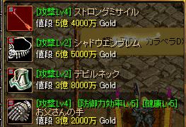 さて。今日もINしてみました。アベシくんとリアルくんが何故か揃って神殿に・・がんばってるようです、ハイwそれはさておき。狩りする気分でもなかったんでGv準備を早々としてウィンドウショッピングなど・・引退ですかね?そんな露店が結構多いらしいですね~ま、それはさておき。ずーっと首の良品が欲しいわけですが(結構あいまいw)今日も「お、いいじゃん!」てのはありませんでしたよっと。んでまぁふと気づいた。Gv準備で今日のインベントリはこんな感じ。これは日によって違います、ハイ。下一列足りないんじゃね?ポタしてないの?とかいう突っ込みは受け付けませんwそこは見せたくないものがあるんです(意味不w青P180で足りるか?って言われると微妙ですけどいろいろ事情があるんだよっwあ、問題はそこじゃなかったw大事なのはここ↓まぁ・・狩りもせず。ソロもせず。露店もせず。Gvだけ出ればこうなりますわな・・・orzヤバいですよ!次回Gvに参加するための物資すら買えませんよ!どないしよ・・・ぶっちゃけ露店とかメンドイのん。。。やっぱあれかソロするしかないか・・・orzあれですわ。実際次のGvまでにお金作れなかったら泣きながらDSで牧場物語してますね古都で応援してますね・・・orzそして本題(ぇwその後Gvに参加。家の時計が遅れてて転送時間ぎりぎりまで気づかなかったなんてこともありましたが無事到着して開始。まぁ。一言で言えば。まともに戦えてねーじゃんってことで。ほぼ全員が必ず落ちたんじゃないですか?っていえるほど落ちまくりでしたよ・・・ちなみにあたしは3回落ちやってらんねーYO!結果?聞くな・・・orzとにかくねぇ。まともなGvやりたいです。落ちたらどうにもならないもの。課金課金させる前にその基本的なとこどうにかしろよ!ほんとやる気失せましたよ。ずっとこのままなら一年目到達時に引退ですかな。よし、移住先(別MMO)さがそーっと(ぇwんじゃおやすみなさい^^