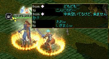 これから家庭訪問で先生がいらっしゃるというのにブログ更新をたくらむラディですwちなみに昔と違って先生はお部屋に上がらず玄関先で10分ほど話すだけ。それでいいのか?なんてふと思いますがね・・・・ さて今日もいつもの狩場へGO!入り口付近の敵がいてアイテムもなかったので攻撃!と奥から剣士さまが(´Д`) ごめんなさいorz と謝って戻ろうとしたら 「一緒に狩りませんか?」 天使さまに見えましたよ! いまだかつて知らない人に「一緒に」って言われたのは数えるほどですから・・・wということでご一緒させていただきました^^あたしより遥かにレベ↑の方で、とはいってもその狩場の適正レベルなんですけどね・・・wとても紳士的な方でした。最初のうちはあまり会話もなく黙々と狩っていたわけですが・・・途中お昼ご飯を交代でし始めたあたりから会話に花がww結構有名なギルドの剣士さんでなんとJDのギルマスを知っているということで余計に盛り上がり・・・・wとても楽しく、とてもウマー(〃∇〃)な時間をすごさせていただきましたw家庭訪問さえなければまだまだ続けたかったのに・・・(ぉぃw 安心して背中を任せられる剣士さんでしたwなんていうか・・あたしがもうちょっとしっかりしてればもっとウマーだったかな?と・・ちょっと足を引っ張ってしまったかも・・・(´Д`)だって・・・ ペア狩り慣れてないんだよぅぅぅ それでも後半それなりにうまく立ち回れてたんじゃないかなぁ?と思いたいです、ハイ。 是非JDにご入隊くだs・・げふんげふん 是非また機会がありましたらご一緒させていただきたいです(〃∇〃) 友録ゲットしたので呼び出しますよ!(違w