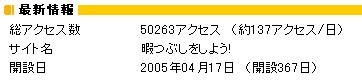 体験入隊してくれてるぜくすさんのページを新着リンクに追加。今日見ててふと思ったんだよねぇ何度か見に来たことあるなと・・・・・・・wまたーり更新・さくっと読める感が結構スキですw正式な?追加は明日以降にします、ハイ。まぁそんな感じでまったーり増えていくと嬉しい感じですなw実はもうヒトリ狙ってる人がいるんですよw同じ赤鯖のプレイヤーさんで結構な頻度で見に来てくださってる方なんですが・・どういうわけか(ぇw)いまだかつてカキコももらったこともなく・・あたしも見に行ってるくせにカキコしたことがない・・けど毎日のように見に行ってる方wさて見に覚えのある方いますか?wまぁシャイで人見知りなラディからお願いすることはほとんどありませんのでこの微妙な関係はずっと続くでしょう、うん。 ああ、もうね。なんでこうなんだあたし・・・って感じ。狩りはメイン狩場空いてなくってふらふらしたけどなんかつまんなくってやめたなんだかふぁーーって感じで落ちるっていってシーフしてたわざわざ拾いに来てくれたのに拒否ったもう救いようがないね・・つーかなんだろう。このもやもやとイライラは。 もうホントイヤだ。なんでこんなに起伏が激しいんだ?なんで自分で自分をコントロールできないんだ?ああ、もうホントヤダ。こんなあたし消えてしまえばいいのに。そんなわけで寝ます。ノシ