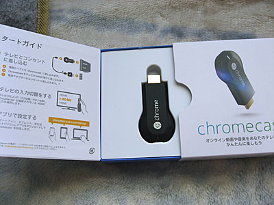 Google Chromecastをやっと買いました。いたってシンプルな箱の中身です。特に取説もなく。1,テレビとコンセントに差し込み2,テレビの入力切替をする3,アプリを設定するという、超シンプルな説明書き。果たしてこれだけで解るのかと思いましたが。ほんとうに、これだけでした。テレビのHDMI端子に差し込んで、PCにアプリをインストールするとテレビの方は勝手に同期してくれる。早速、Android端末にもインストールして試してみましたが。すぐに見れました。これは、楽しいぞ~。ただ、見れるのは動画サイトだけ!YouTubeや、楽天SHOWTIMEは大画面でないけれどPC画面もGoogle Cromeを使えば、ワイヤレスでテレビに映し出すことも可能でした。ただ、スマホのゲームをテレビの大画面でというのは、まだムリなんですね。これから対応アプリが増えてくるのでしょうかね。その辺がちょっと残念。でも、これがあれば、レンタルDVDにいかないかも。【レビューを書いて送料無料】Google Chromecast HDMI Streaming Media Player / グーグル クロームキャスト HDMI ストリーミング Media Player 日本正規品 /Chrome cast /05P05July14