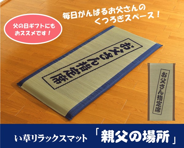 夏の暑い日にピッタリの お父さん専用い草ラグ です。取り合えず、今年の候補の第1弾です。なんと、あのテレビドラマでも使用されているんです。この写真で分かる人はいるでしょうか。フジテレビ系列で放送された【残念な夫】玉木宏さんと倉科カナさんが出演しているドラマで細井茂の部屋にこれが登場します。再放送がそろそろあるかもしれないので、そのときは要チェックですよ。い草の質もよく、厚みもありますよね。お母さん専用がないのが残念。近日におすすめ第2弾もご紹介します。い草 ラグ マット 約70×150cm 親父の場所-大和-( おやじの場所 マット 寝ござ 畳 ごろ寝 寝具 マット 仮眠 プレゼント い草カーペット い草 ラグ マット 父の日 早割 )送料無料 送料込み 父の日 ギフト