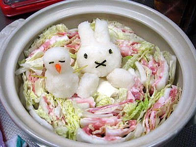 大根おろしアートと言えば、お鍋を使った立体的なキャラ作り。今年は、これが流行ってますよね。流行ってるのは、とりあえず試してみる。今回は、実家で大根を2本ももらったので、大根の1/2を使って作ってみました。 題して『ミッフィーとオラフ風雪だるま』作り方は1.土台にミルフィーユ鍋にする。 ミルフィーユというのは、白菜の間に豚肉をはさんで並べた鍋のこと CMでしてましたよね。2.大根を卸す 大根を卸し、水分は十分切っておく3.卸した大根で形づくる初めてにしては、いい出来具合です。食べるのがもったいないですよね。第2弾にも期待してください。