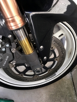 あと2週間で冬休み。なのに忙しくなるのはここから。嫌だな、追い込み。フェードアウトしながら休みに入りたいのに。 冬休みにやりたいのが、やっぱりつけてみようと思ったフォグランプの取り付け。専用品じゃないから取り付け方は考えないといけません。よく見る装着か所のひとつがフロントフェンダーの締めつけボルト部分につけるというもの。 フロントフォークだと左右にハンドルを切ったとき、インナーカウルにあたるので、自分も装着するならフェンダーの横だと思います。なにかでオフセットしないといけないので、ボルト長さもきっちり決めないといけません。現車でこの辺のボルトを確認してみます。 径はM6。 樹脂パーツのフェンダーを傷めないように、段付きスペーサーが入ってます。てっきりサイドカウルと同じような段付きボルトかと思ってました。 ところがー、このスペーサーが樹脂!マジかぁー。 重かったフォグランプをボルト1本で固定するから、しっかり締めこもうと思ってました。カウルに傷つけないように、なにかしら段付きボルトみたいな構造になってるとは予想してたけど、それが樹脂とは。 これじゃあ思いっきり締めこめない。今のカウルを適度に固定するだけのトルクでも、ボルトの跡が残るほど。樹脂じゃダメそうです。 なにか別のスペーサーを見繕わないと。 そのためには必要な厚みを知る必要があるのでノギスで採寸。厚みが5mm。 フランジ部が1.5mm。 さすがにこれも金属だとフロントフェンダーに傷がつくか。フェンダーに傷をつけず、しっかり締めこめて、かつそのボルトも疲労で折れないように、ってのがお題です。あとはどこから電気を取るか、用意したスイッチはうまくつくのか。次はこの辺を現車で確認です。